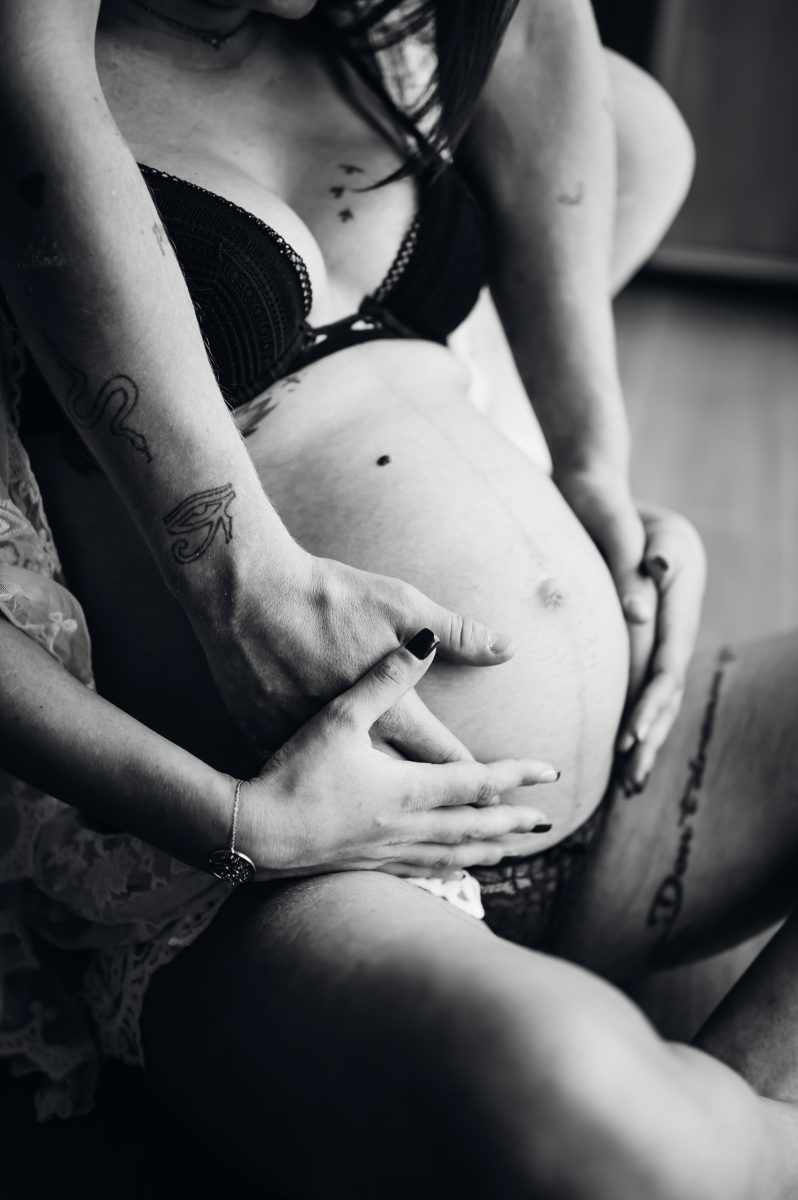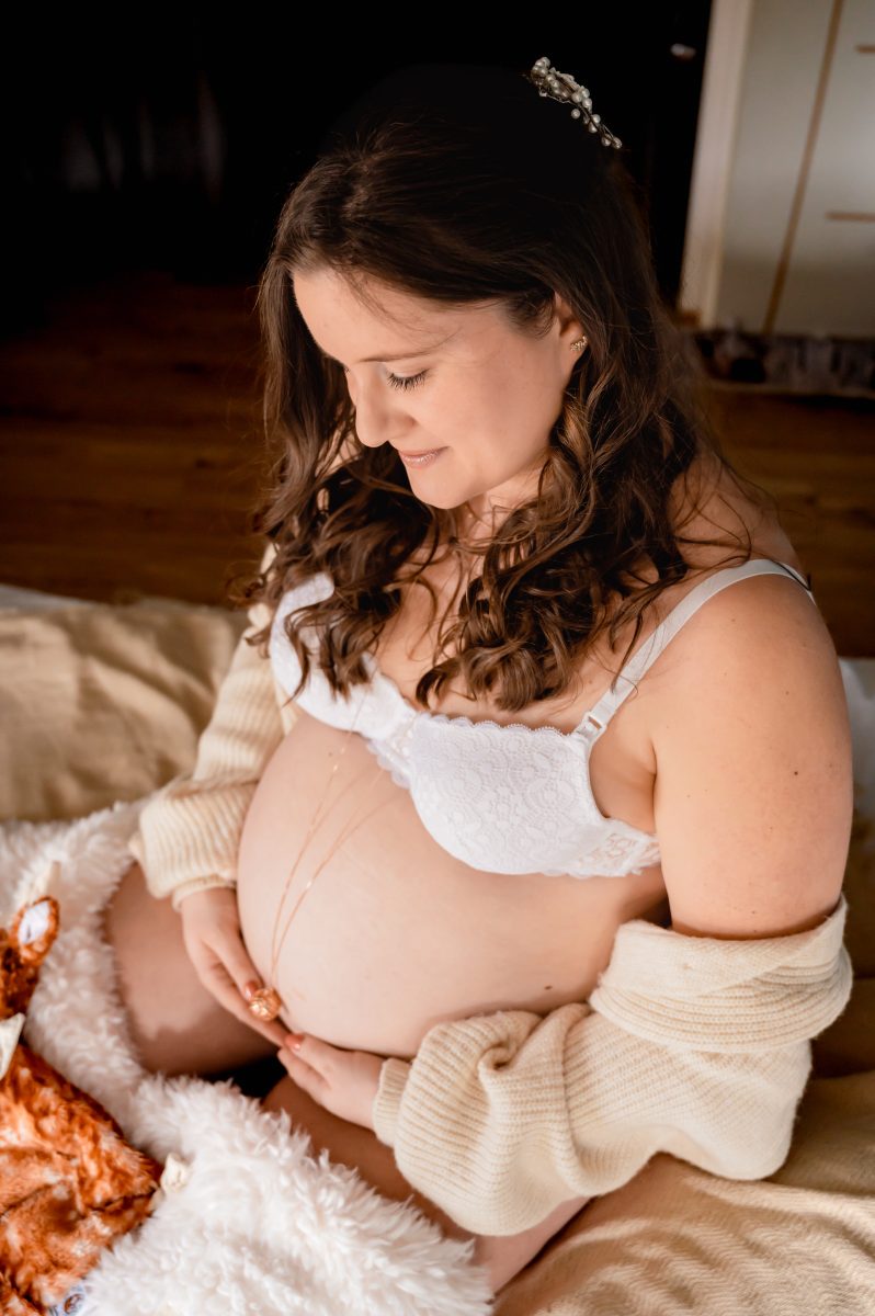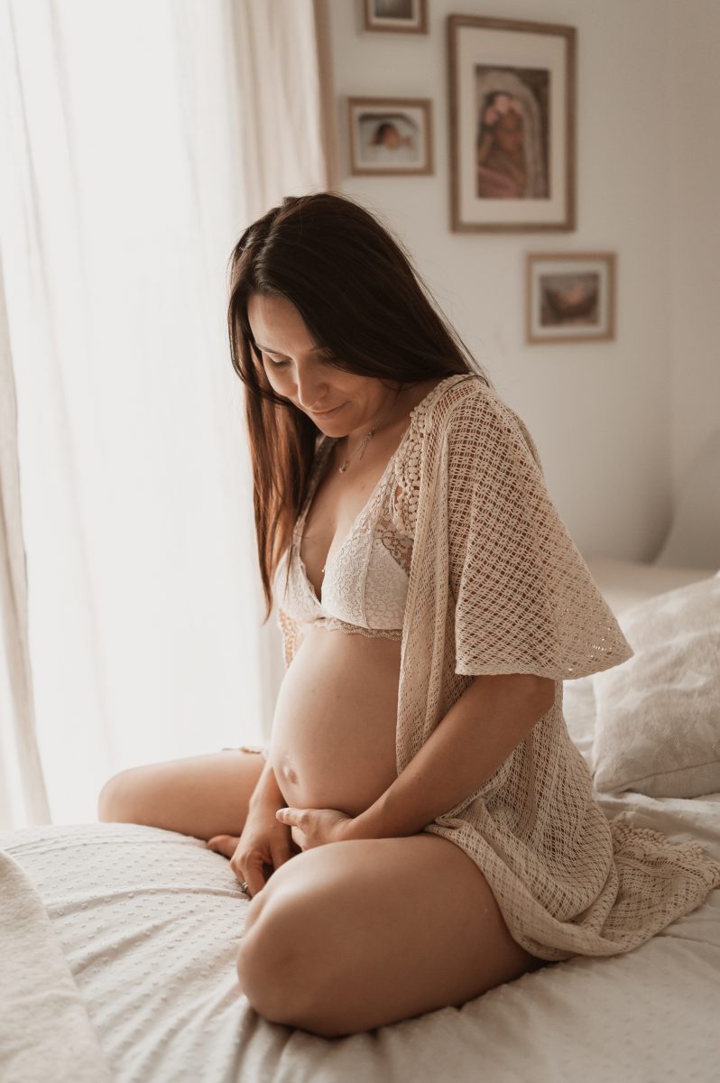 Pour la séance grossesse , entre la 28e et la 34e semaine, quand le ventre est bien arrondi mais que vous êtes encore confortable.